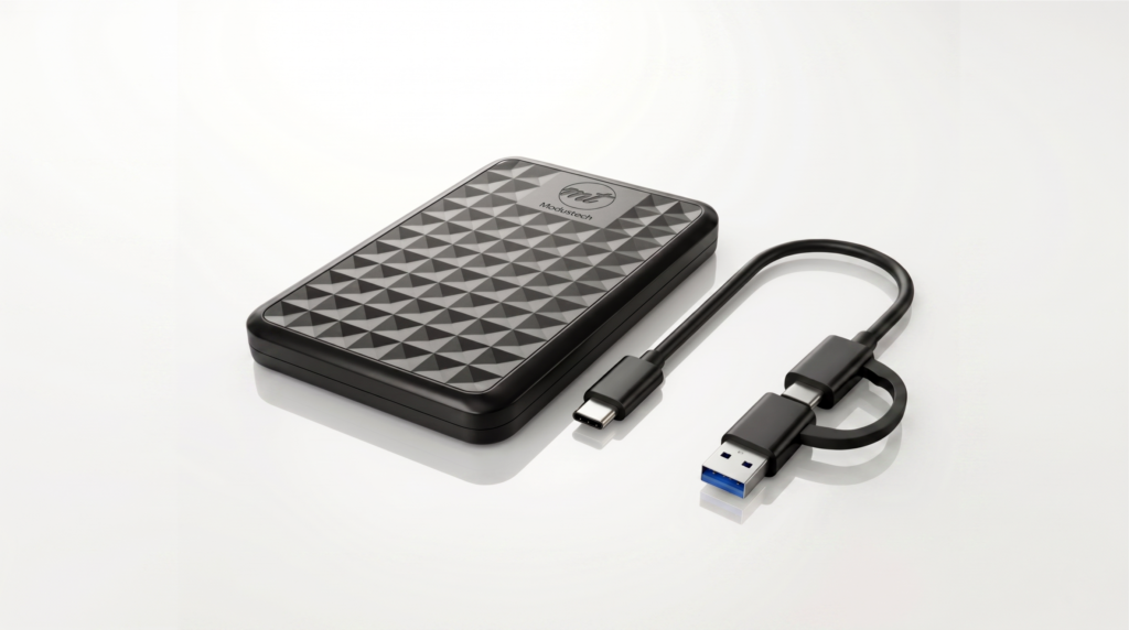 Where it wins: The 2-in-1 cable is the single biggest quality-of-life upgrade over most budget rivals. Most drives at this price still ship USB-A only, which is an annoyance every time you plug into a modern laptop. ModusTech also leans into cleaner industrial design than the utilitarian WD and Seagate equivalents.